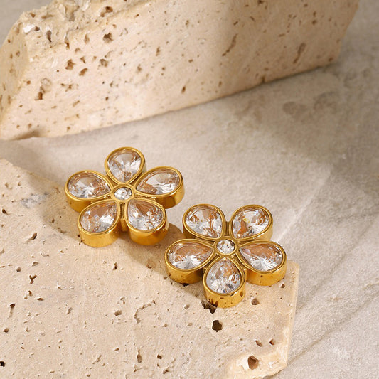 18K gold exquisite dazzling flower inlaid gem design light luxury style earrings